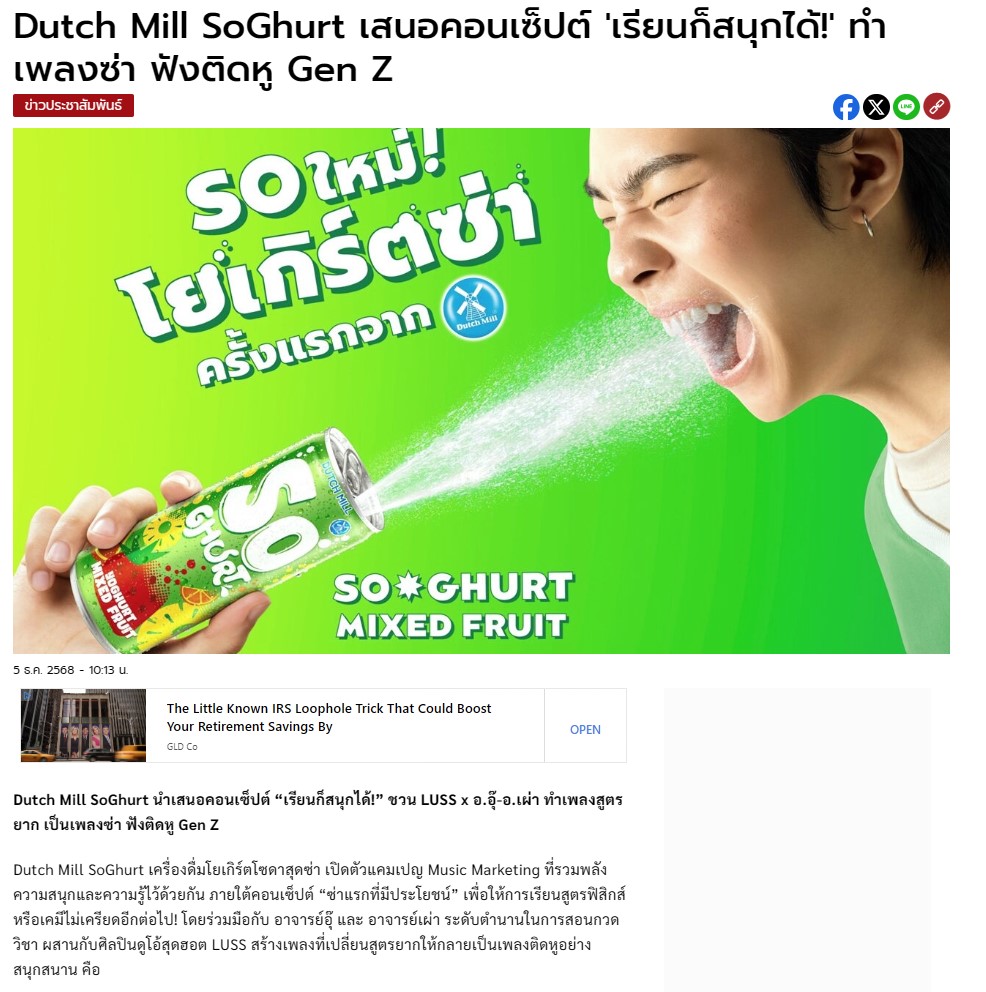 https://www.khaosod.co.th/pr-news/news_10047632#:~:text=Dutch%20Mill%20SoGhurt%20%E0%B9%80%E0%B8%AA%E0%B8%99%E0%B8%AD%E0%B8%84%E0%B8%AD%E0%B8%99%E0%B9%80%E0%B8%8B%E0%B9%87%E0%B8%9B%E0%B8%95%E0%B9%8C%20%27%E0%B9%80%E0%B8%A3%E0%B8%B5%E0%B8%A2%E0%B8%99%E0%B8%81%E0%B9%87%E0%B8%AA%E0%B8%99%E0%B8%B8%E0%B8%81%E0%B9%84%E0%B8%94%E0%B9%89!%27%20%E0%B8%97%E0%B8%B3%E0%B9%80%E0%B8%9E%E0%B8%A5%E0%B8%87%E0%B8%8B%E0%B9%88%E0%B8%B2%20%E0%B8%9F%E0%B8%B1%E0%B8%87%E0%B8%95%E0%B8%B4%E0%B8%94%E0%B8%AB%E0%B8%B9%20Gen%20Z