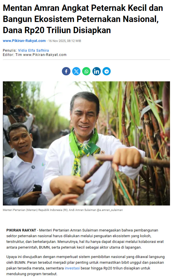 https://www.pikiran-rakyat.com/news/pr-019795079/mentan-amran-angkat-peternak-kecil-dan-bangun-ekosistem-peternakan-nasional-dana-rp20-triliun-disiapkan#:~:text=Mentan%20Amran%20Angkat%20Peternak%20Kecil%20dan%20Bangun%20Ekosistem%20Peternakan%20Nasional%2C%20Dana%20Rp20%20Triliun%20Disiapkan